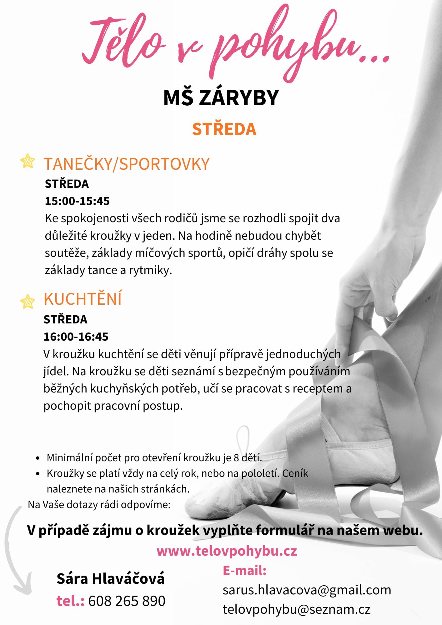 Nabídka zájmových kroužků pro školní rok 2024-2025 v MŠ Záryby